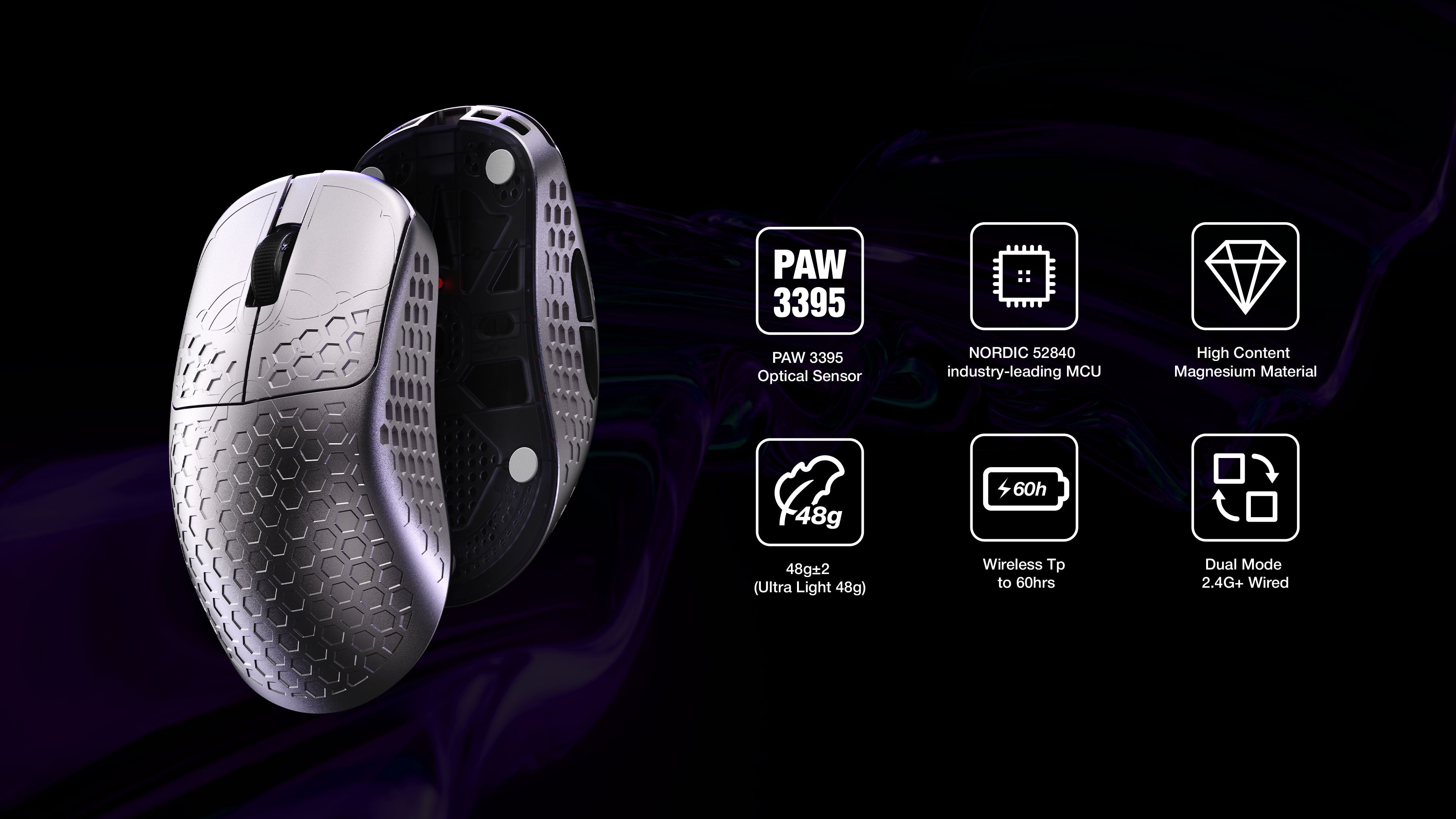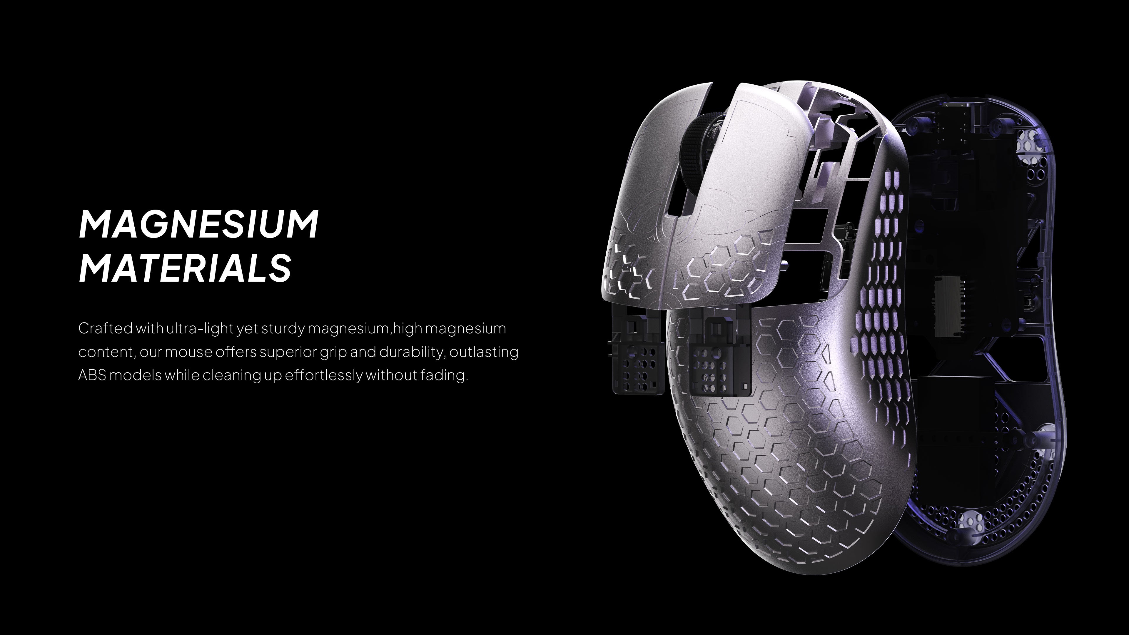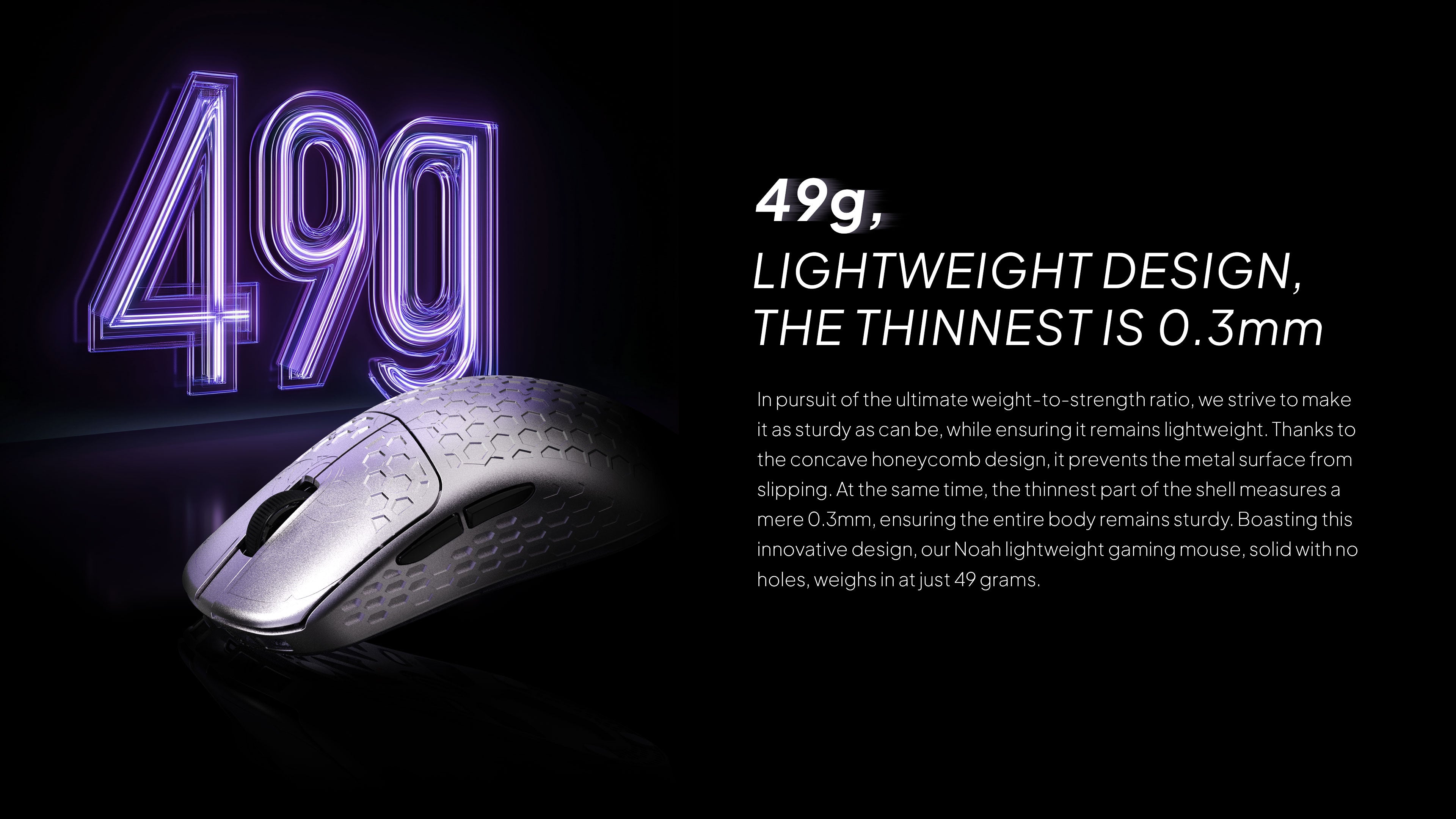 After the successful launch of our carbon fiber mouse - Akitsu, our team has created another masterpiece with our magnesium alloy gaming mouse -Noah.